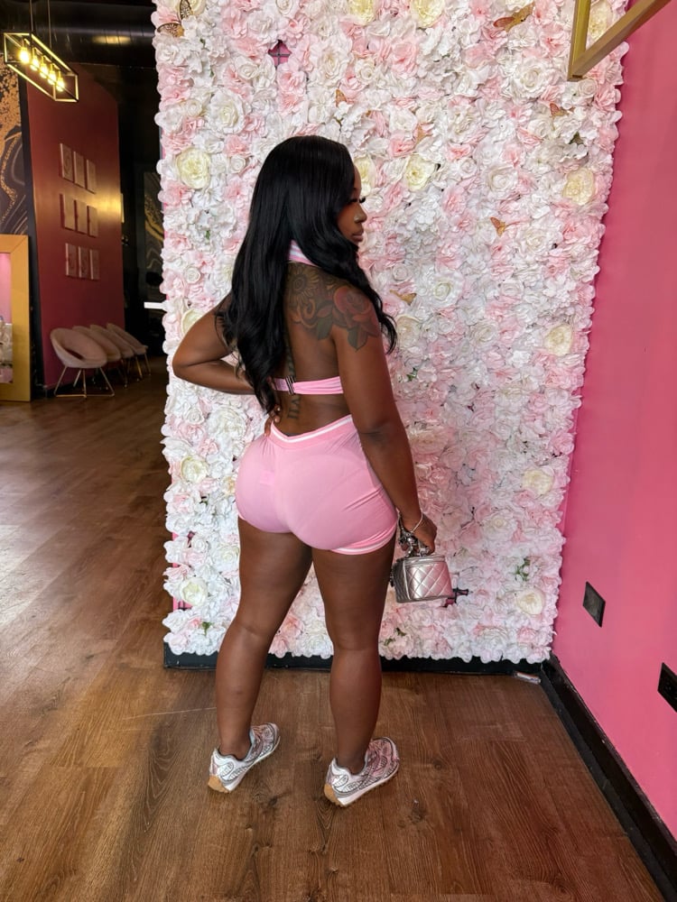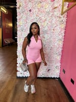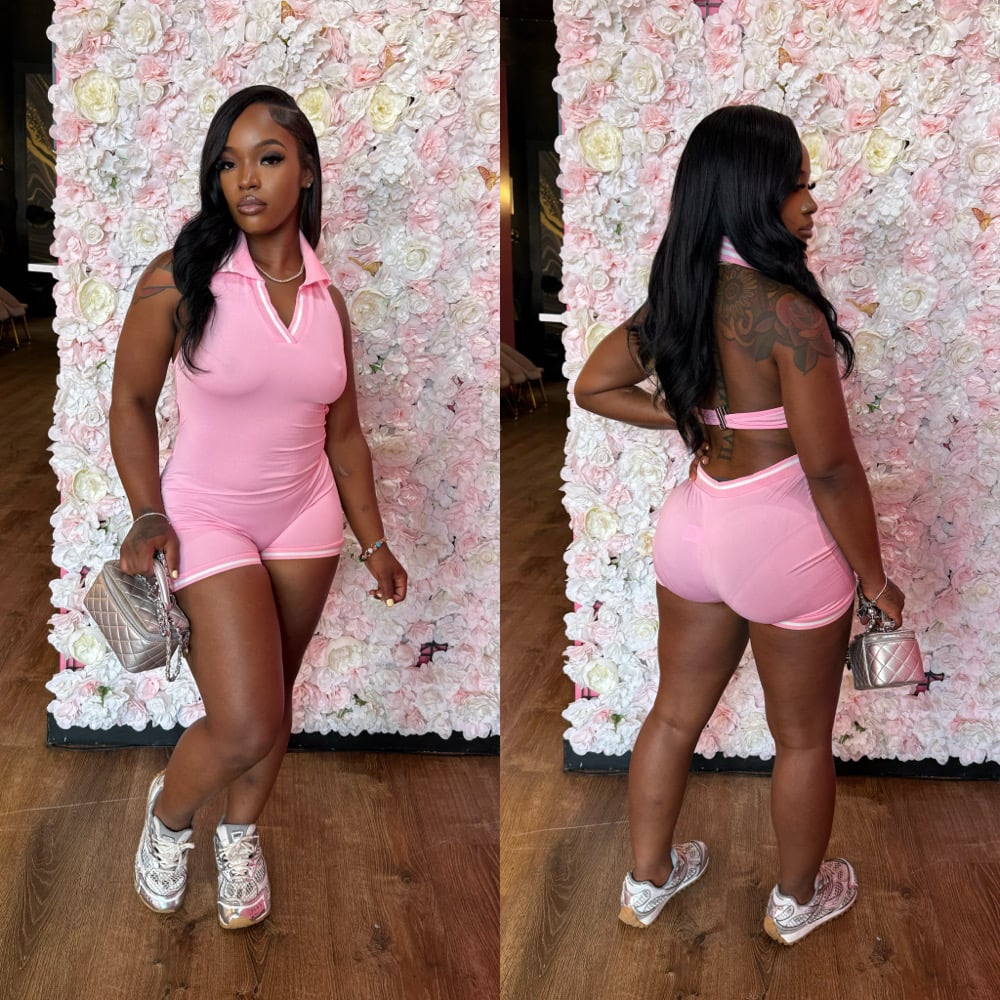 The soft pink shade brings the perfect mix of feminine energy and downtown edge. Rock it with chunky sneakers and hoops for daytime flex or elevate it with strappy heels and a clutch for after-hours slay. Whether you’re hitting the city streets, rooftop parties, or weekend festivals, this romper is made for making moves.