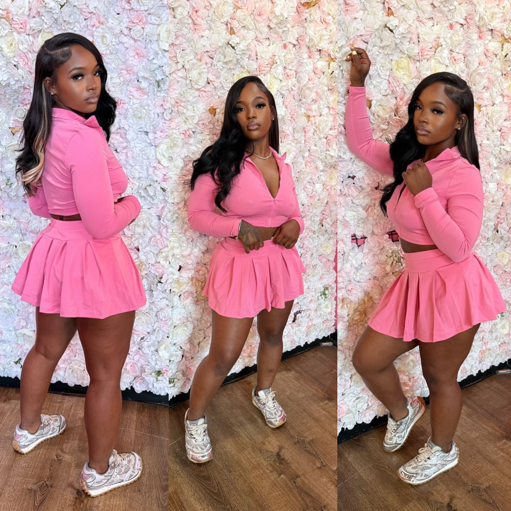 Turn up the vibe in our Pink Skort Set — the perfect combo of flirty fun and city-ready edge. This two-piece flex features a cute, flowy skort paired with a matching top that keeps your look fresh, bold, and effortlessly cool.