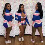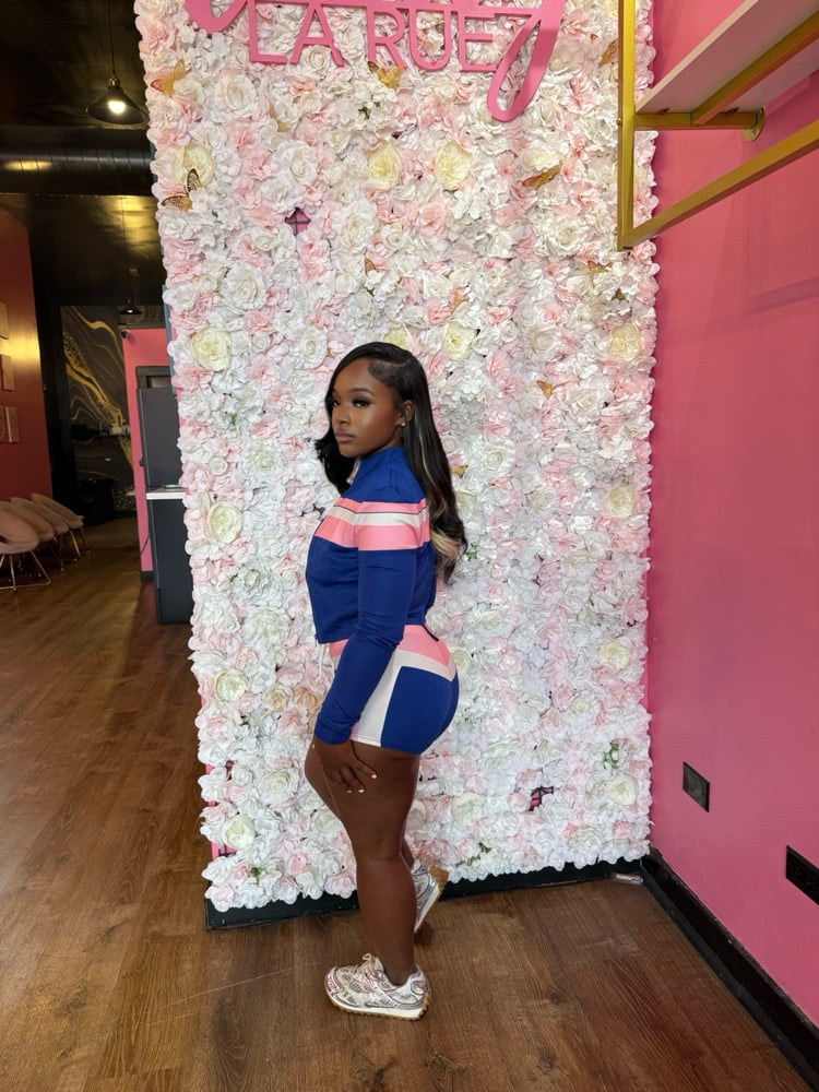 Step out loud in our Royal Blue, Pink & White 3-Piece Short Set — featuring a fitted bra, cropped jacket, and matching shorts made for flexing with no effort. The royal blue brings the bold, the pink adds a playful touch, and the white keeps it crisp and clean.